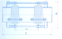 该膨胀节由两个单式铰链型膨胀节,用长的中间接管组合而成,它能吸收单平面内的横向位移,它们的铰链板与销轴具有承受内压推力能力。